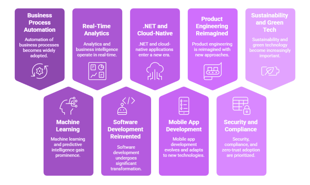AI-driven automation, predictive intelligence, mobile innovation, and cloud-native development will lead the next wave of transformation.